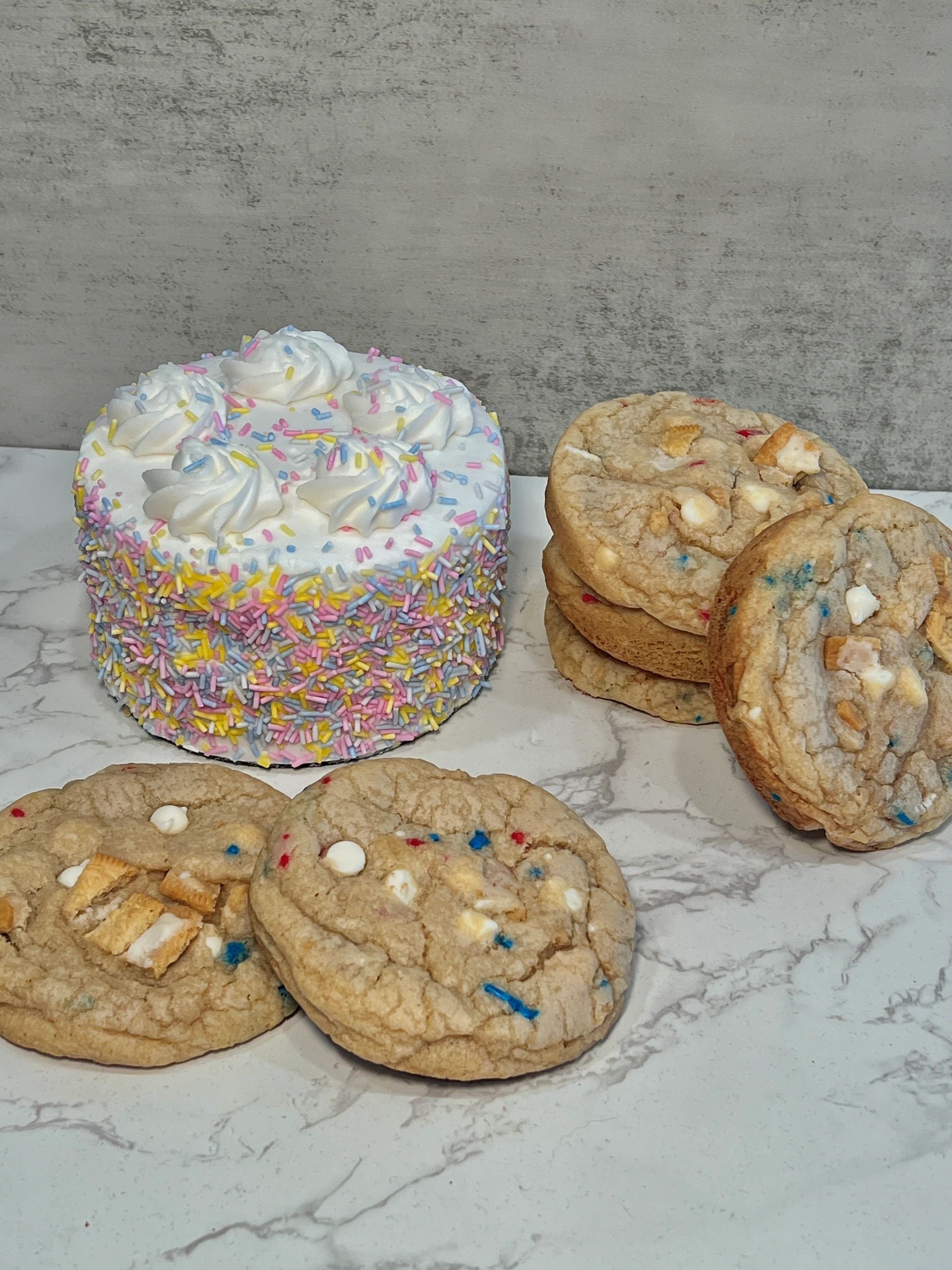 Red Velvet oreo, Lemon White Chocolate, Toffee Chocolate Chunk, Peanut Butter, Birthday Cake